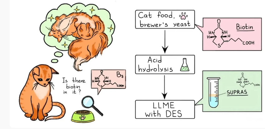 «Суть нашего метода в том, что растворитель как бы “собирается” прямо в пробе: компонент эвтектического растворителя при смешивании с водой и тетрагидрофураном создает супрамолекулярный растворитель, который эффективно захватывает даже такие полярные молекулы, как биотин. Анализ занимает всего 10 минут и подходит даже для трудных образцов, таких как сухие корма или дрожжи. Это одновременно просто, быстро и экологично», — привели в пресс-службе слова магистранта второго курса СПбГУ Кирилла Барбаянова.
