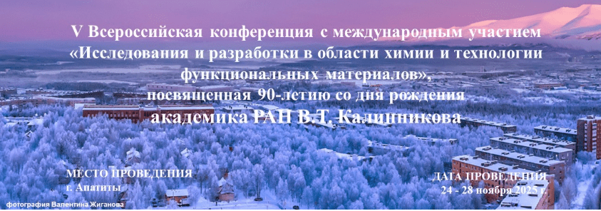Приглашаем Вас принять участие в V Всероссийской конференции с международным участием «Исследования и разработки в области химии и технологии функциональных материалов», посвященной 90-летию со дня рождения академика РАН Владимира Трофимовича Калинникова, которая состоится в период с 24 по 28 ноября 2025 года.
